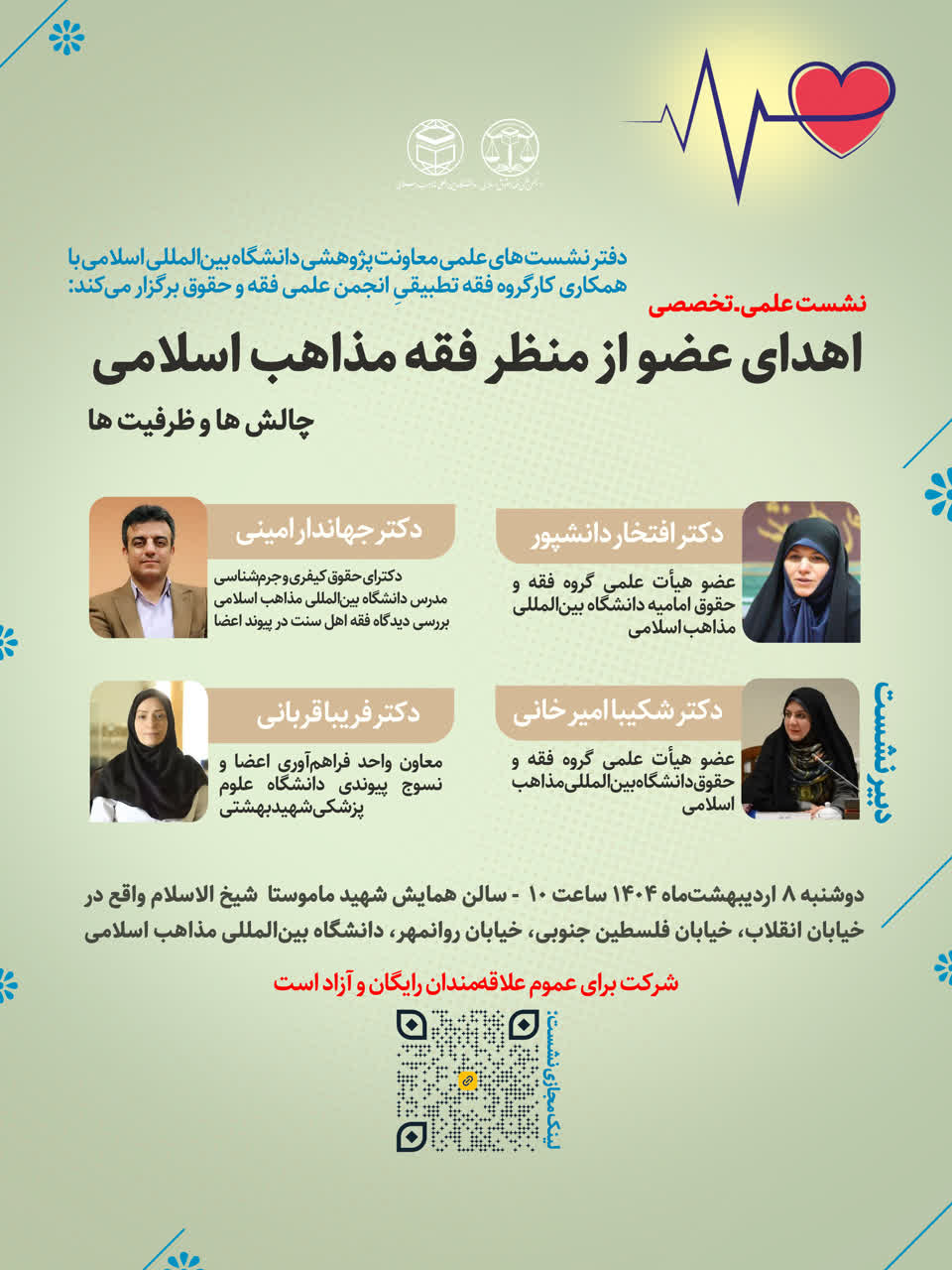 دفتر نشست های علمی معاونت پژوهشی دانشگاه بین‌المللی اسلامی با همکاری کارگروه فقه تطبیقیِ انجمن علمی فقه و حقوق برگزار می‌کند: نشست علمی ـ تخصصی: 《بررسی مبانی فقهی و حقوقی چالش‌های اهدای عضو در میان مذاهب اسلامی》