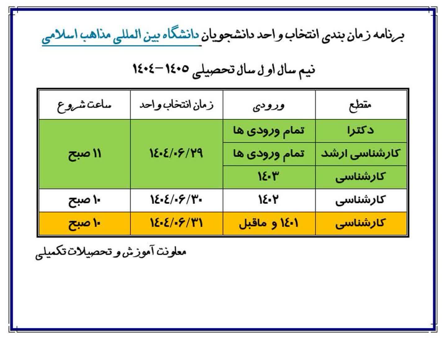 برنامه زمان بندی انتخاب واحد نیمسال اول سال تحصیلی ۱۴۰۴-۱۴۰۵ ۲۹ شهریور ۱۴۰۴ | ۱۴:۲۴ کد : ۵۹۴ اخبار و رویدادها تازه ترین اخبار تهران و شعب ارسال به دیگران نام شما ایمیل شما ایمیل دریافتکننده ارسال انصراف تعداد بازدید:۷۷۶